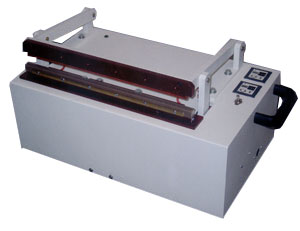 Inexperienced workers quickly learn to operate these electromagnetically powered sealers. The operator simply inserts the open end of the pouch between the sealing jaws and strikes a switch. The Heat and Dwell time cycles are adjustable and once they are set no operator adjustment is required. The sealing jaws open automatically when the cycle is completed.