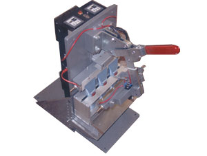 When using this machine the operator, after inserting a full rack of filled tubes between the sealing jaws, manually closes and locks the sealing jaws starting the automatic heat sealing cycle. A light signals the end of the cycle when the jaws may be opened.